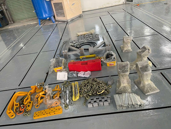 Hệ thống bao gồm:1. Hệ cố định khung xe xuống bệ kéo - 23: 04 DC-G0122 Đế chân kẹp chính